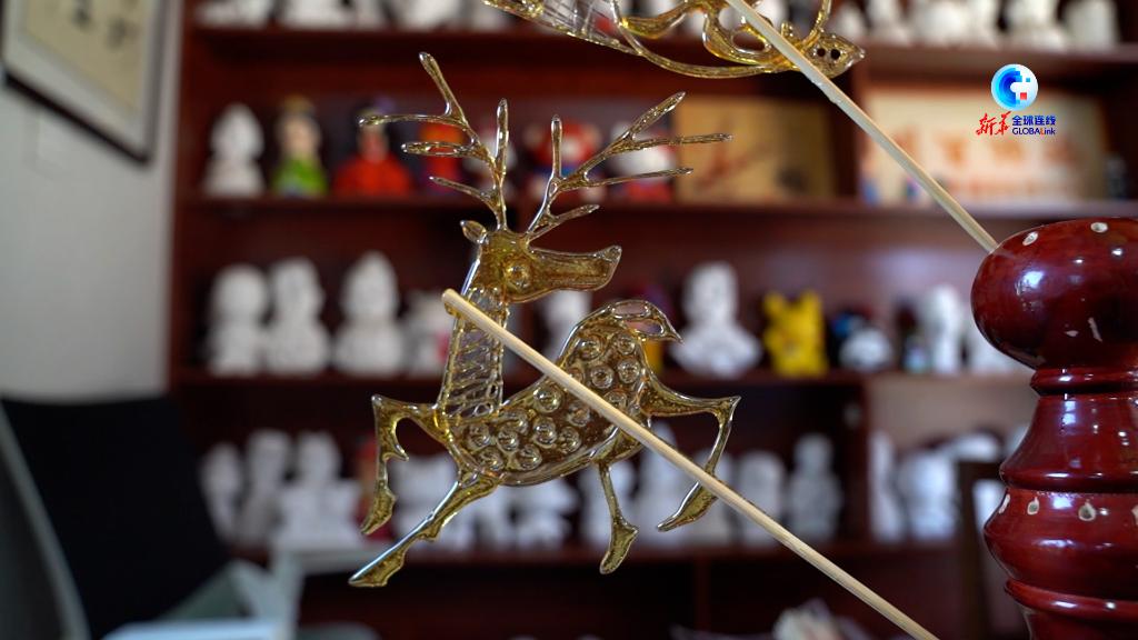 在店里,新華社記者與安吉麗娜現場學習糖畫制作,繪制十二生肖等各種圖案,感受中國民間非遺的魅力。