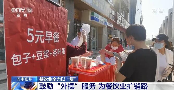 在河南,緩繳失業、工傷保險,引導金融機構發放信用貸款、發放消費券,政府從多方面幫助餐飲企業紓困解難。同時,鼓勵餐飲企業有條件地開展外擺服務。早上7時,王風杰和工作人員就來到了鄭州市經開中心廣場站地鐵口,針對附近寫字樓的白領們推出包子、豆漿和雞蛋早餐套餐。中午,他們還要推出100份團餐,兩波“外擺”的收入接近4000元。