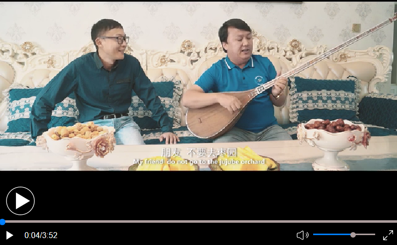今天,在新疆音樂采風的王江江來到喀什地區莎車縣,這里是維吾爾族十二木卡姆的發祥地,被譽為“十二木卡姆之都”。他將去拜訪的歌手阿不力米提,從小熱愛音樂,跟著前輩學習了木卡姆,現在是一位音樂創作者。聽!阿不力米提正在演唱優美的歌曲:“無法忘記一起散步的時光,無法忘記一起散步的花園,難以忘記月光下的誓言……”