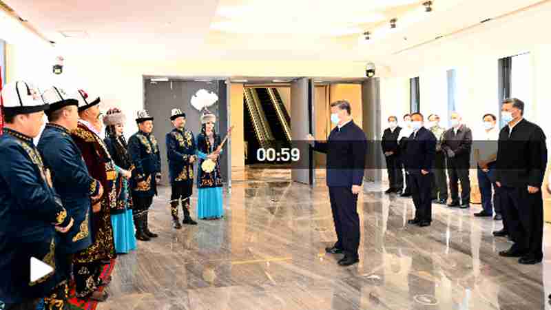 習近平總書記13日上午來到新疆維吾爾自治區博物館,參觀《新疆歷史文物展》,觀看柯爾克孜族英雄史詩《瑪納斯》說唱展示,并同《瑪納斯》非物質文化遺產傳承人親切交談,稱贊他們的表演非常有感染力。習近平指出,中華文明博大精深、源遠流長,由各民族優秀傳統文化百川匯流而成。像《瑪納斯》這樣的文化遺產,既是少數民族的寶貴財富,也是中華民族的寶貴財富,要做好保護、傳承、整理工作,使之發揚光大。