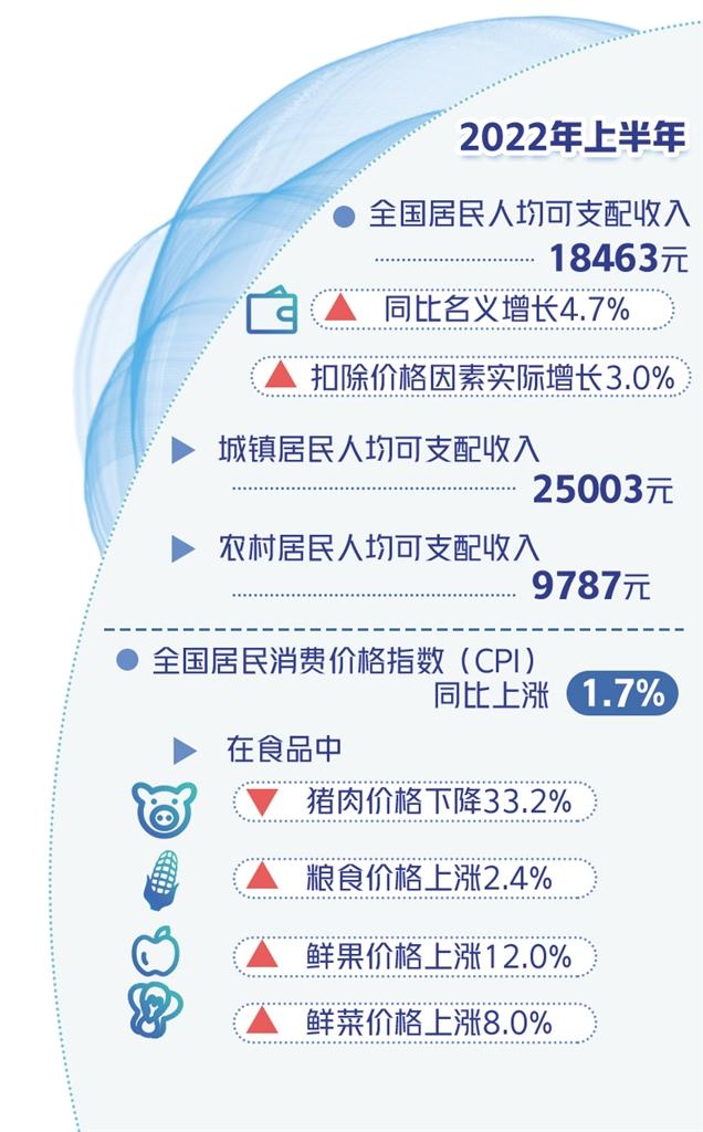 上半年,各地區各部門著力穩定宏觀經濟大盤,全國居民收入繼續保持增長。