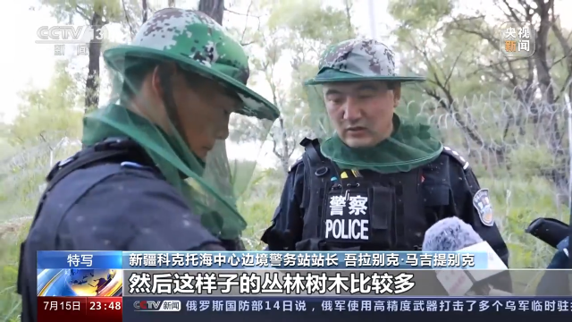 新疆科克托海中心邊境警務站站長 吾拉別克·馬吉提別克:因為我們這防區有戈壁沙漠,然后這樣子的叢林樹木比較多,干枯的,然后行進過程中(常有)劃破我們裝備這樣的事情。