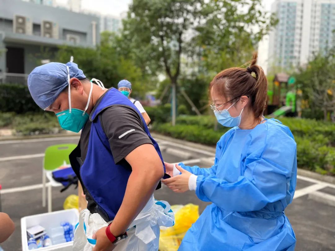 “我們給采樣志愿者準備了冰寶貼,直接貼在額頭能起到降溫效果;‘冰馬甲’就是在馬甲前后放置冰袋,可幫他們在采樣過程中降溫;冰鎮好的電解質飲料可以幫助志愿者采樣后補充水分,以防脫水!北P古園府居委籌建組組長孫丹說。