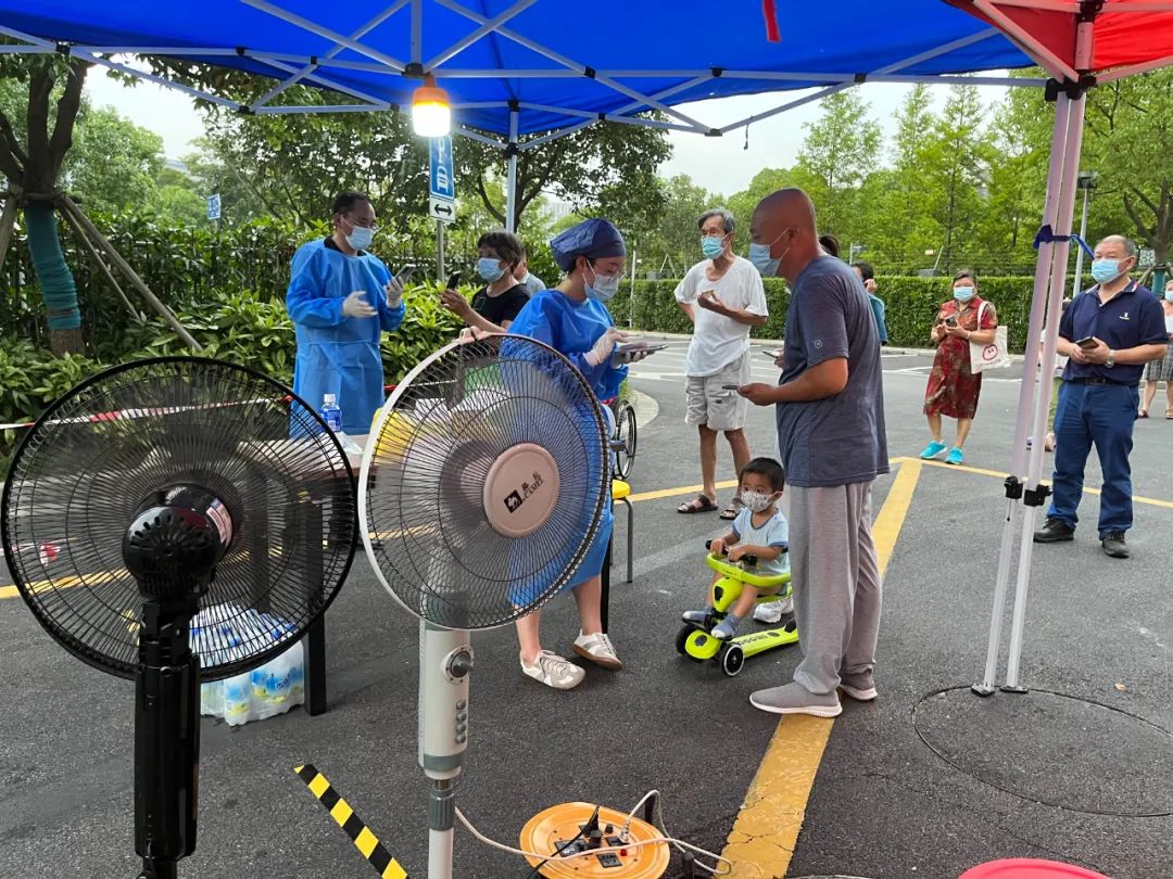 央廣網上海7月16日消息(記者林馥榆 通訊員楊育杰)上海近日連續的高溫天氣,給小區核酸篩查帶來挑戰,但志愿者依然聞令而動、火速集結,站到疫情防控最前沿。
