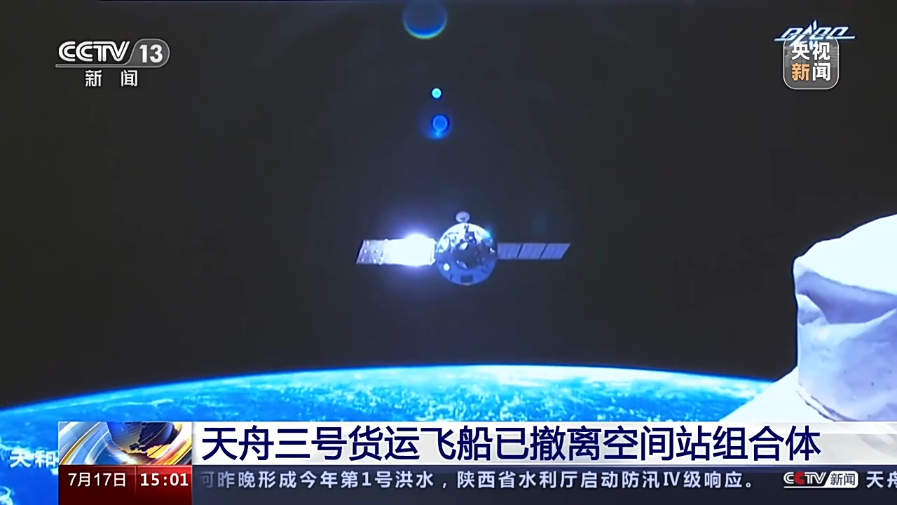 今天(17日),天舟三號貨運飛船完成全部既定任務,于10時59分撤離空間站組合體。