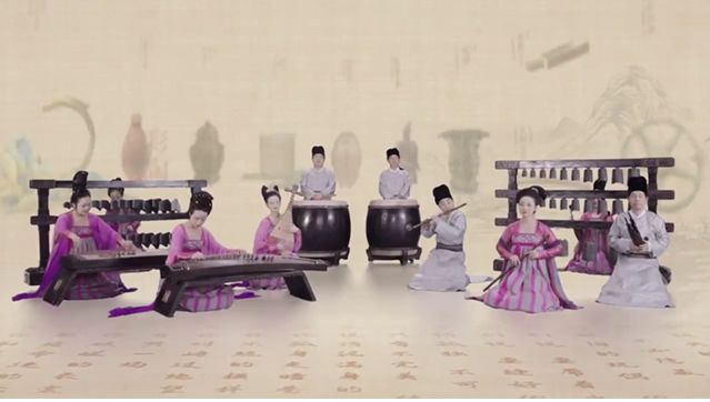 一幅唯美的古韻卷軸緩緩漫卷開,一隊樂手或坐或立,沉吟撥弦、鼓瑟吹笙,衣袂飄飄間,雅樂聲聲入耳。“我有嘉賓,鼓瑟吹笙”,王孫誥編磬、琵琶、笛、中國鼓、瑟……9種古代樂器演繹流行音樂,入耳的是鏗鏘有力的《孤勇者》,古文物奏出新旋律。