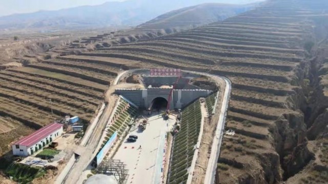正在建設中的集大原高鐵項目控制性工程——恒山隧道北口