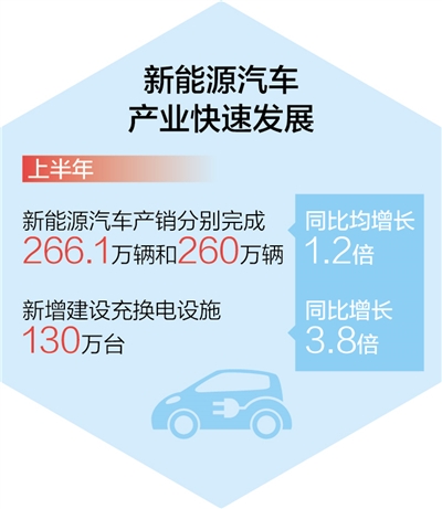 “上半年高技術制造業增加值同比增長9.6%,高于制造業增加值增速6.8個百分點!碧镉颀堈f,新興產業已成為推動轉型升級、增強產業韌性的重要新動能。其中,二季度,單晶硅、多晶硅、光伏電池等產品產量分別增長61.3%、50.6%、30.4%,較一季度分別加快37.3、13.0、6.1個百分點。
