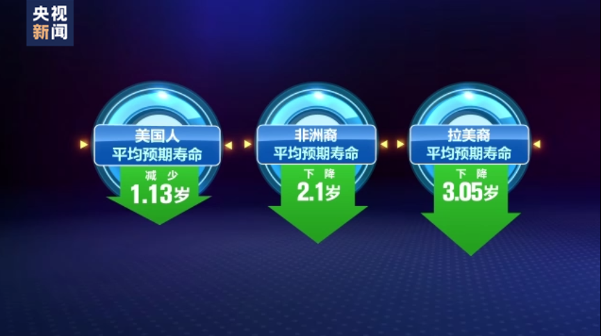 在 “政治抗疫”之下,美國固有的種族歧視等社會頑疾正在加劇。美國一項研究顯示,新冠疫情使美國人平均預期壽命減少了1.13歲,這是自第二次世界大戰(zhàn)以來最大降幅。其中,非洲裔和拉美裔的平均預期壽命下降了2.1歲和3.05歲。美國疾控中心的數(shù)據(jù)顯示,在疫情中失去主要監(jiān)護人的兒童中,白人兒童占35%,少數(shù)族裔兒童占65%,而少數(shù)族裔只占美國人口的39%。此外,少數(shù)族裔受疫情沖擊更大的原因包括收入和機會的不平等。