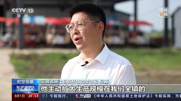 安徽潁上縣陳橋鎮黨委書記 吳亞:他主動擴大生產規模在我們全鎮的示范帶動作用是非常明顯的,如果我們鎮有十個八個像老蔡這樣的糧食經紀人,新型經營主體,那么全鎮6.5萬畝耕地都種上優質專用小麥也是指日可待了。