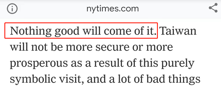 《紐約時報》發(fā)表專欄文章,稱佩洛西竄訪中國臺灣地區(qū)“與拜登總統(tǒng)的愿望相悖”,是“無比魯莽、危險和不負責任的”行為。專欄作家托馬斯·弗里德曼警告,佩洛西此行“不會有任何好結(jié)果(Nothing good will come of it)。”