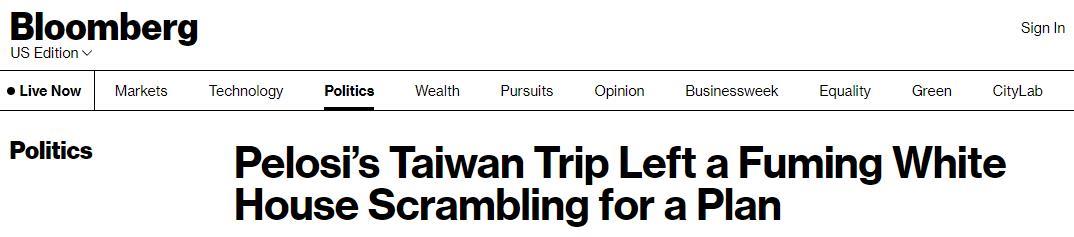 彭博社對于美國政府在佩洛西竄訪一事上的反應(yīng)給出了更多細節(jié),證實白宮因佩洛西不聽勸告而“氣得抓狂”。
