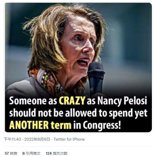 美國政治人物和媒體對佩洛西的集體批評是對美國民意的回應(yīng)。美國民眾連日來一直在網(wǎng)上發(fā)帖抨擊佩洛西。