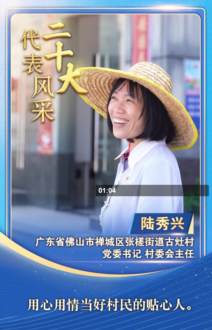 “二十大代表風采”一起來認識廣東省佛山市古灶村黨委書記、村委會主任陸秀興。