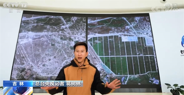 總臺(tái)央視記者 蔣樹林:大家現(xiàn)在看到的這兩幅照片就是吉林一號(hào)從太空中傳來的衛(wèi)星遙感圖,其實(shí)這兩幅照片是同一地塊、不同時(shí)期的兩幅照片,在我右手邊,去年冬天這里還是白花花的一片鹽堿地,現(xiàn)在這里已經(jīng)長(zhǎng)滿了莊稼。我們另外一路記者張傲然現(xiàn)在正在豐收現(xiàn)場(chǎng),馬上把現(xiàn)場(chǎng)交給他。
