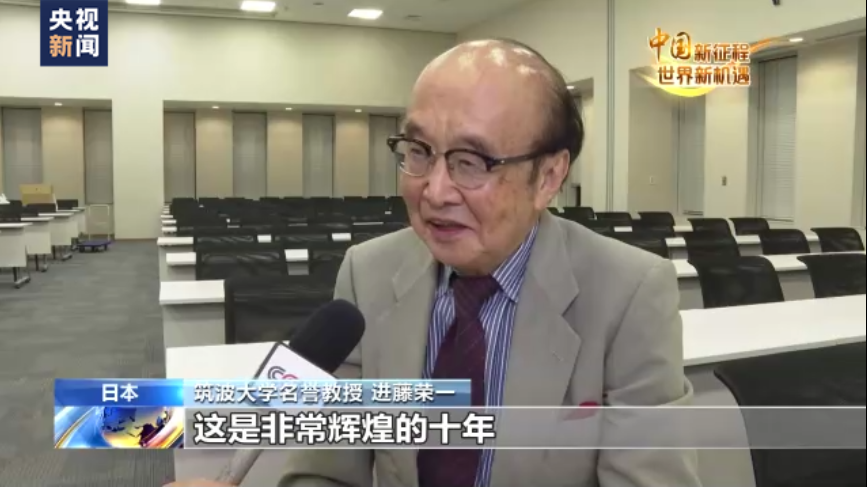 筑波大學(xué)名譽(yù)教授 進(jìn)藤榮一:這是非常輝煌的十年,可以用“三級(jí)跳”來(lái)作比喻。從國(guó)際關(guān)系方面來(lái)說(shuō),提出了共建“一帶一路”倡議,這是中國(guó)智慧。