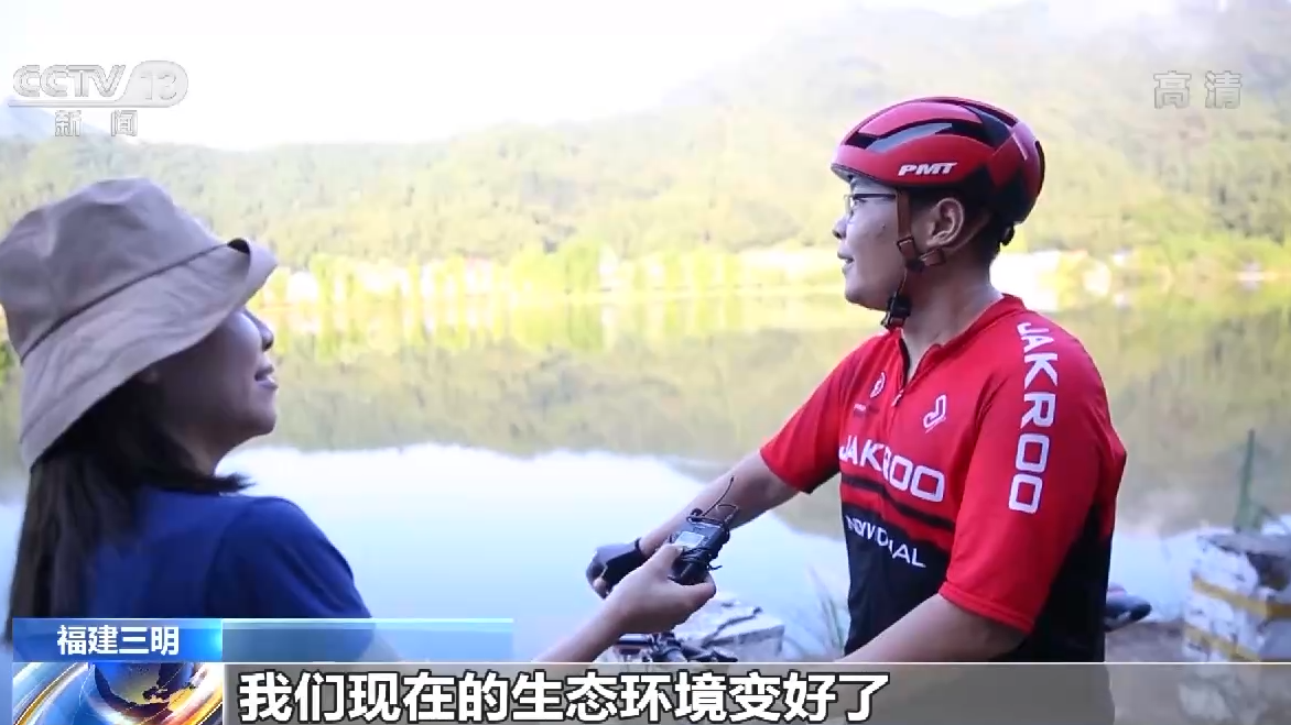 福建三明騎行愛好者 謝雄:我們現在的生態環境變好了,山更青,水更綠了,我們每天騎行在山水畫中,整個人都身心愉悅。