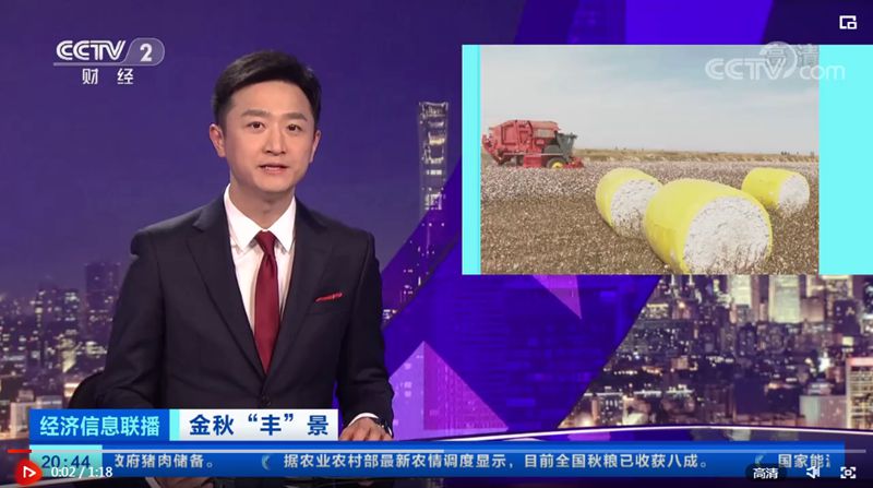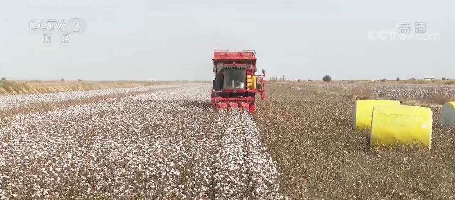 據了解,采棉機最大的優勢是采收后的集成打包,為農戶節省了運輸時間,通常一臺采棉機一天能收120畝機采棉,一天采花量在5萬公斤左右。