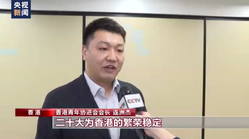 香港青年協進會會長 連洲杰:二十大為香港的繁榮穩定,為香港推進由治及興的新階段注入了新的動力,習近平總書記提到人才是第一資源,創新是第一動力,我相信香港青年會圍繞著二十大的宏偉藍圖發揮自身的優勢,為祖國的偉大復興作出新的貢獻。