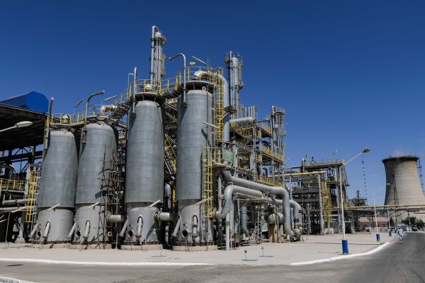 這是8月18日在烏茲別克斯坦納沃伊市拍攝的納沃伊氮肥股份公司聚氯乙烯工廠。烏茲別克斯坦聚氯乙烯生產綜合體項目是共建“一帶一路”倡議下推動國際產能合作的重要工程。(新華社發)