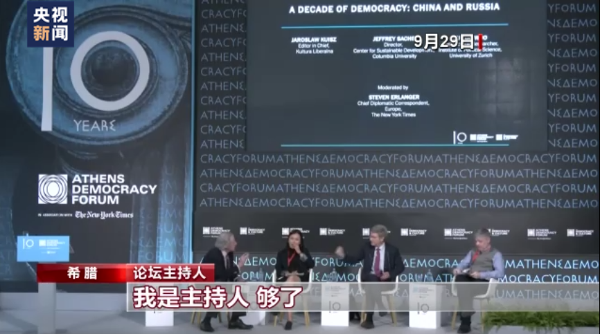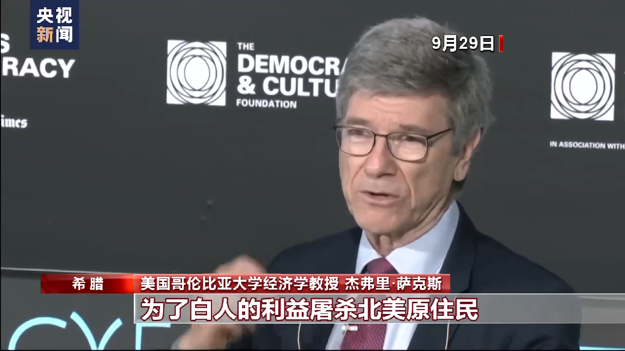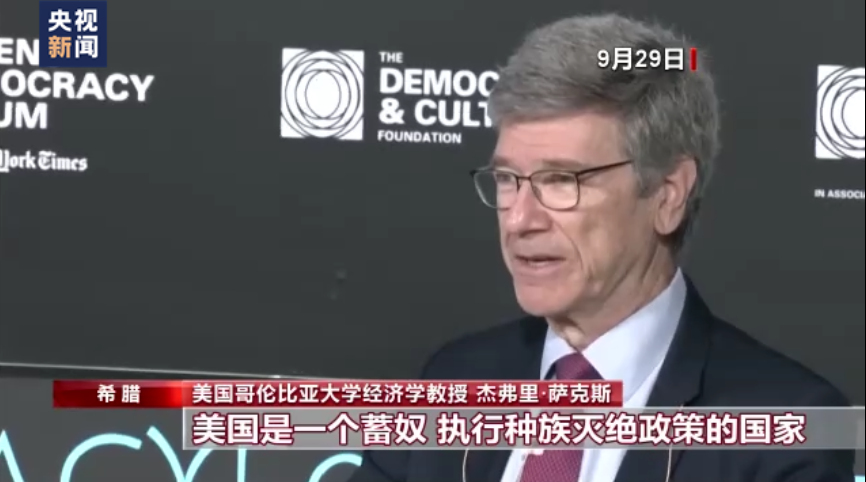 9月29日,杰弗里·薩克斯在希臘的一個論壇上作為嘉賓發言。在發言中,他痛斥以美國為代表的所謂“西方民主”赤裸裸的雙標性,卻遭到論壇主持人多次打斷。
