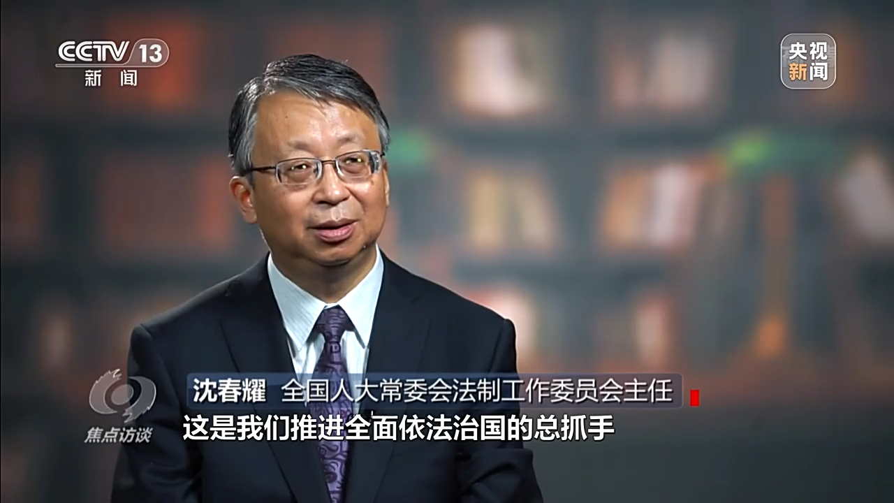 全國人大常委會法制工作委員會主任 沈春耀:建設社會主義法治國家,這是我們的一個奮斗目標,很關鍵的是中國特色社會主義法治體系,這是我們推進全面依法治國的總抓手。具體包括五個子體系,要形成完備的法律規范體系、高效的法治實施體系、嚴密的法治監督體系、有力的法治保障體系和完善的黨內法規體系,把法治領域從全過程各領域各方面都概括進去。