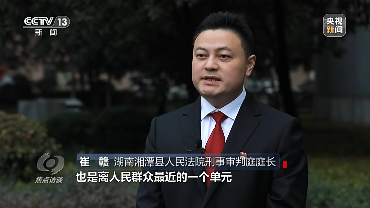 湖南湘潭縣人民法院刑事審判庭庭長 崔贛:我覺得法庭作為法院最小的一個單元,也是離人民群眾最近的一個單元,我們要用好法庭法治保障的武器,用更真摯的感情去為老百姓服務。
