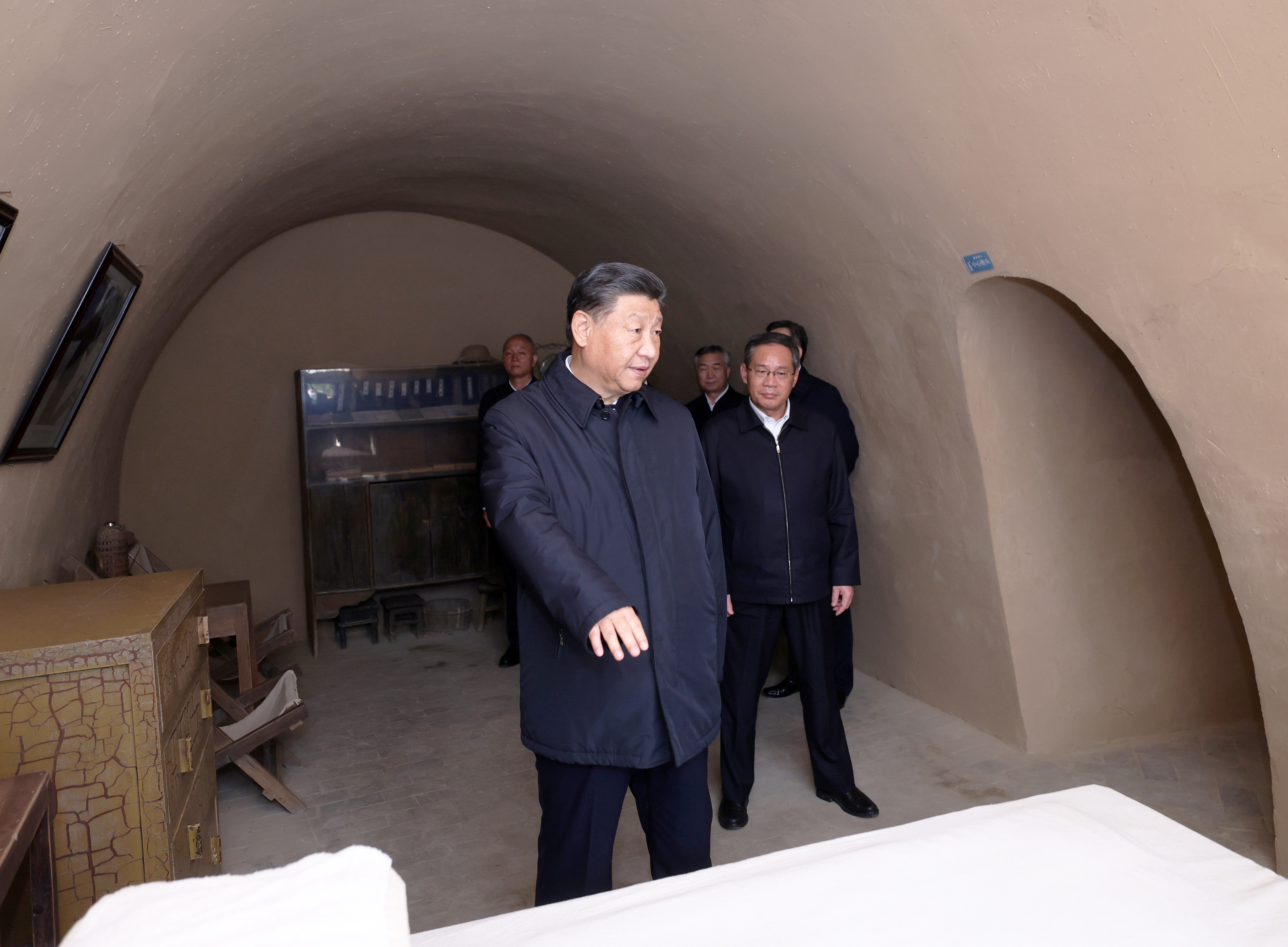 △ 10月27日,中共中央總書記、國家主席、中央軍委主席習近平帶領中共中央政治局常委李強、趙樂際、王滬寧、蔡奇、丁薛祥、李希,瞻仰延安革命紀念地。這是習近平等在楊家嶺參觀毛澤東舊居。