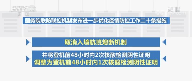 央視網(wǎng)消息:國(guó)務(wù)院聯(lián)防聯(lián)控機(jī)制11月11日發(fā)布《關(guān)于進(jìn)一步優(yōu)化新冠肺炎疫情防控措施 科學(xué)精準(zhǔn)做好防控工作的通知》,通知明確了進(jìn)一步優(yōu)化防控工作的二十條措施。對(duì)于入境航班和人員管理方面,進(jìn)一步優(yōu)化疫情防控工作二十條措施也做了調(diào)整。