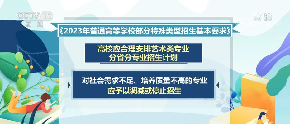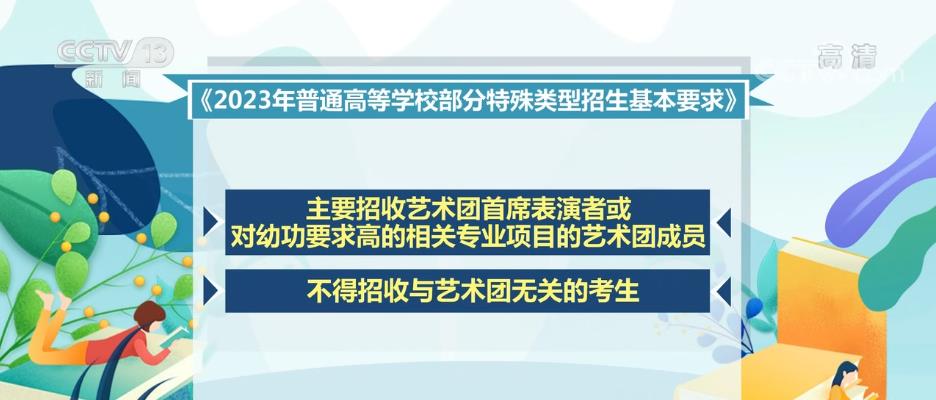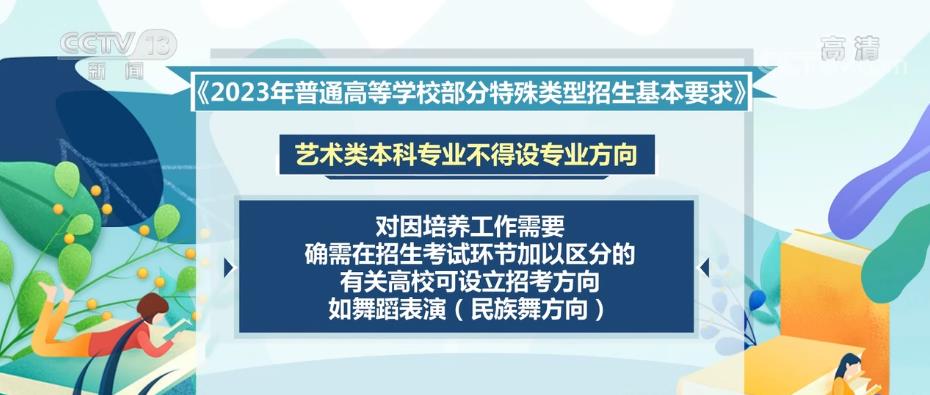 教育部下發(fā)的《2023年普通高等學(xué)校部分特殊類型招生基本要求》對高校藝術(shù)類專業(yè)、高水平藝術(shù)團(tuán)、高水平運(yùn)動隊、保送生等特殊類型招生工作提出了具體要求。