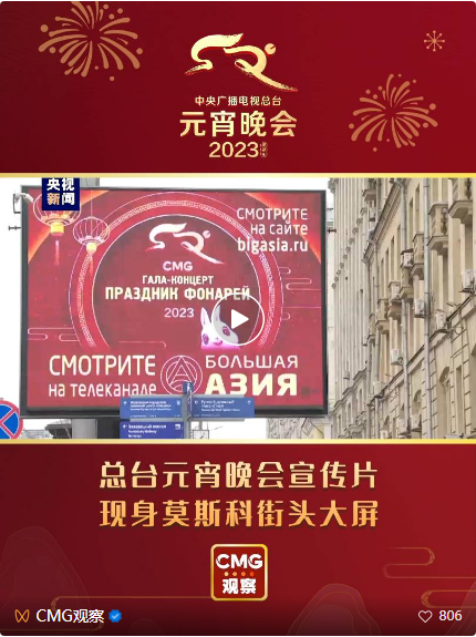 2月3日至2月6日,總臺元宵晚會宣傳片亮相哈薩克斯坦首都阿斯塔納市,在市中心最大商場“可汗之帳”附近、“克魯因”購物中心內(nèi)、多斯特克路、阿斯塔納歌劇院和科納耶夫路等繁華地帶和街區(qū)的10塊大屏幕上,全天24小時滾動播出,集中向阿斯塔納市民展示總臺元宵晚會。