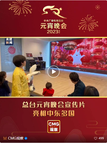 同一天,中國駐土耳其大使館新春招待會播放了總臺元宵晚會宣傳片,現(xiàn)場數(shù)百名當?shù)厝A人華僑及土耳其各界人士觀看。