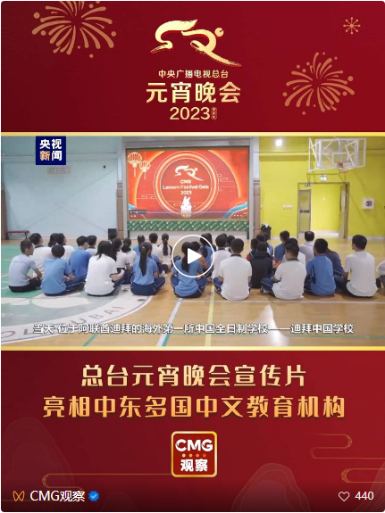 位于阿聯(lián)酋迪拜的海外第一所中國全日制學(xué)校——迪拜中國學(xué)校,以及當?shù)刂饕形慕逃龣C構(gòu)也在各自的活動教室循環(huán)播放總臺元宵晚會宣傳片,給遠在異國他鄉(xiāng)的中國孩子們送上滿滿的問候和祝福。