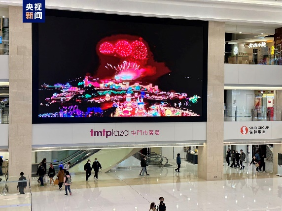 在香港新界地區(qū),大埔林村許愿廣場循環(huán)播放總臺元宵晚會宣傳片。大埔林村許愿是香港新春的特色節(jié)目,每年都會吸引眾多市民和游客,他們向祈愿樹拋寶碟、點蓮花燈,為家人和朋友祈福祝愿。總臺元宵晚會宣傳片不僅營造了春節(jié)的熱鬧氛圍,也將元宵晚會的團圓祝福傳遞給香港市民和游客。