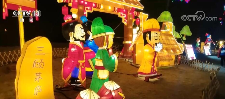 臥龍崗景區(qū)工作人員 冀柯:設置了300多組彩燈,把三國故事和我們的民俗文化、非遺節(jié)目串聯(lián)在一起了。