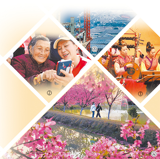圖④:日前,人們在湖南省常寧市羅橋鎮(zhèn)櫻花園賞花游玩。