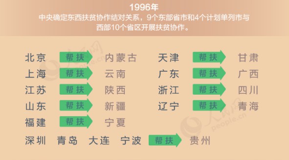 ▲1996年,東西扶貧協(xié)作結對關系。(圖片來源:人民網(wǎng))