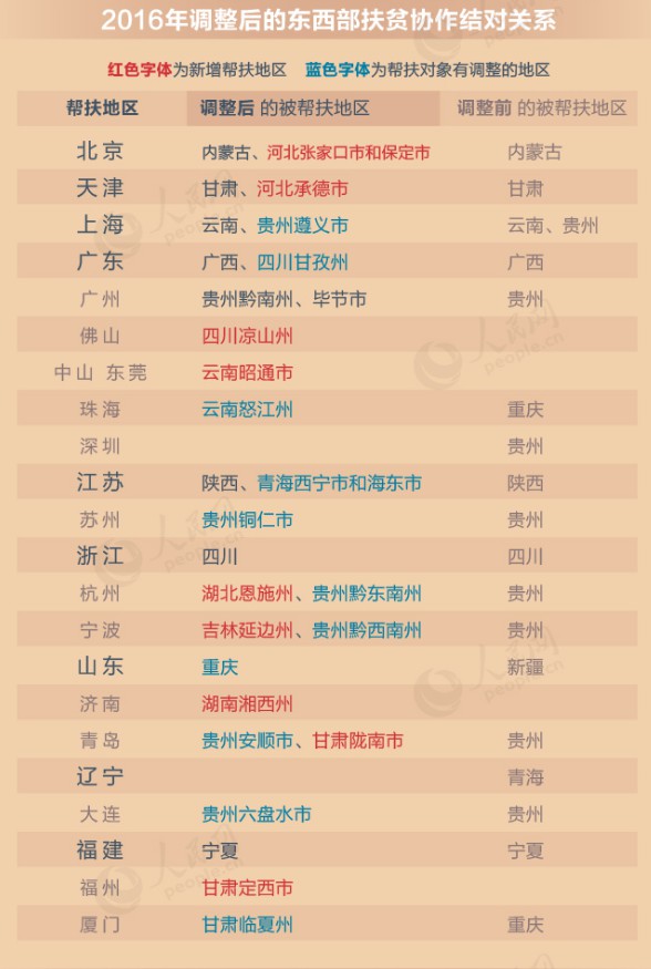 ▲2016年,東西部扶貧協(xié)作結對關系。(圖片來源:人民網(wǎng))