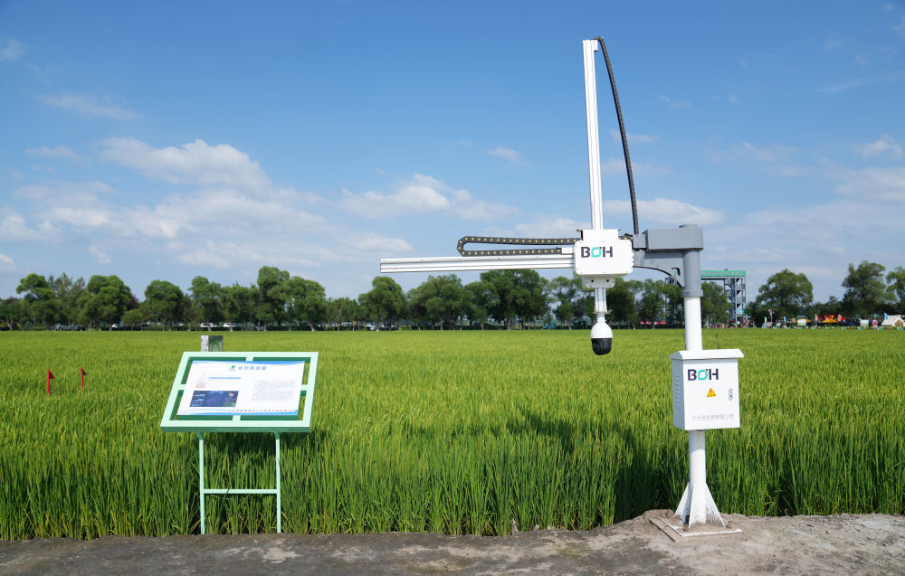這是2023年8月10日在北大荒集團閆家崗農場有限公司農業現代化示范區拍攝的利用數字技術的葉齡診斷儀。新華社記者 王建威 攝