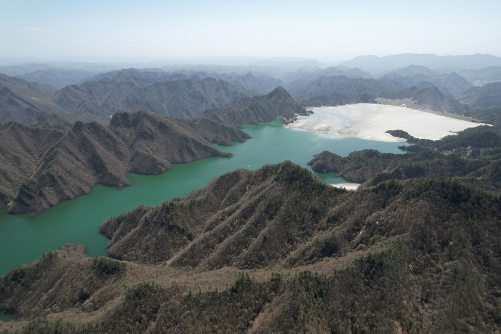 經過生態治理的渭南市華州區金堆鎮栗西溝尾礦庫(2022年4月7日攝,無人機照片)。新華社記者 邵瑞 攝