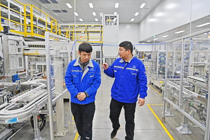 29歲的車間班組長劉洪恩在動力電池生產(chǎn)一線崗位已工作10年,是王東林的徒弟。師徒兩人調(diào)出近期生產(chǎn)數(shù)據(jù),對不同時段溫度、壓強等進行對比分析,討論改進工藝的方案!斑@個崗位考驗對數(shù)據(jù)的分析和整理能力,每天都有細(xì)節(jié)可以改進,工作不枯燥!眲⒑槎髡f。
