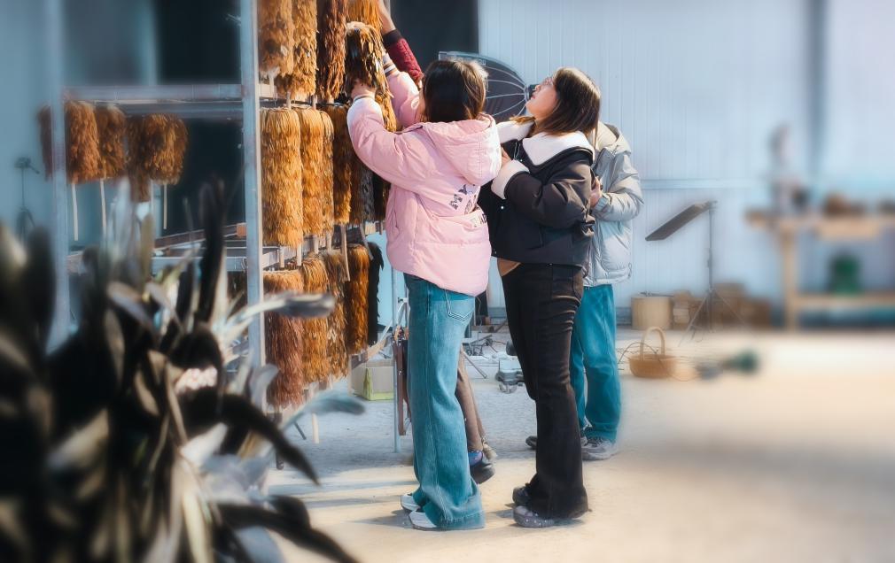 雞毛撣子“飛”上網之后,村里人都“忙瘋”了——忙著開發新產品,忙著拍攝短視頻,忙著參加各種展會和比賽。劉文豪說,這一年多來村里制作的雞毛撣子先后拿到了10多個旅游特色商品類獎項,帶動一批村民實現家門口就業。