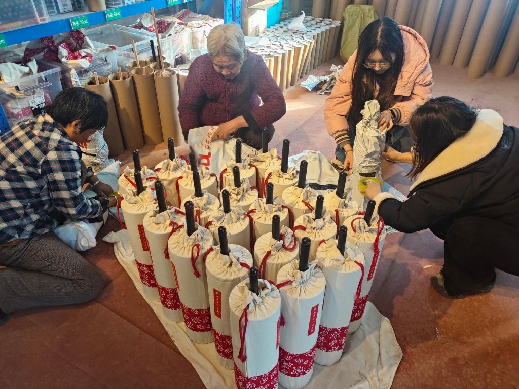2月10日,村民們在打包已經下單的雞毛撣子。(韓茂民 攝)
