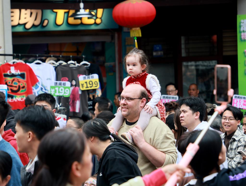 讓老外紛至沓來的,是貼心的政策。丙午馬年第一天,我國單方面免簽“朋友圈”增至50國;240小時過境免簽政策適用口岸增至65個,覆蓋主要樞紐城市;1.3萬家離境退稅商店為外國朋友備足了“優惠大禮包”。一系列貼心服務,讓外國游客能夠“說走就走”,“超長待機”體驗中國年。