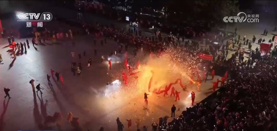 夜幕降臨,極具陜南特色的燒火龍表演震撼登場。舞龍者迎著飛濺的焰火輾轉騰挪、穿梭起舞。此外,打鐵花、火壺等表演也輪番亮相,讓市民和游客在絢爛光影中感受傳統民俗的別樣魅力。