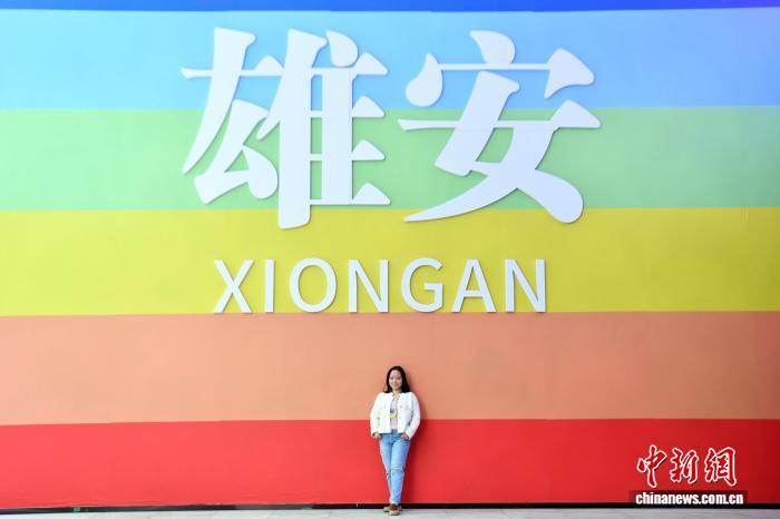 3月23日,鄭艾玲在雄安拍照。 中新社記者 韓冰 攝