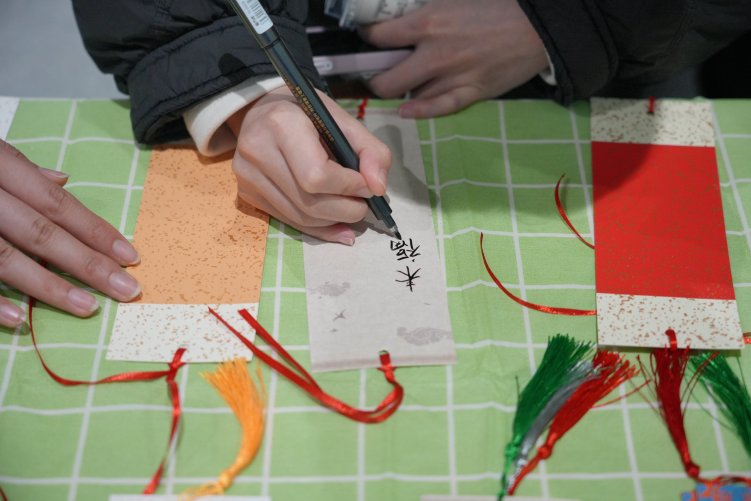 在姓氏書簽制作區,旅客們找到寫有自家姓氏淵源的竹簽后,挑選出心儀的空白書簽,一筆一畫將姓氏謄寫其上。不多時,一張張承載家族記憶的個性書簽便制作完成。現場,工作人員還向旅客發放國風貼紙、定制書簽與國風伴手禮等小禮物,候車大廳里彌漫著陣陣歡聲笑語,文化溫情在旅途中悄然流淌。