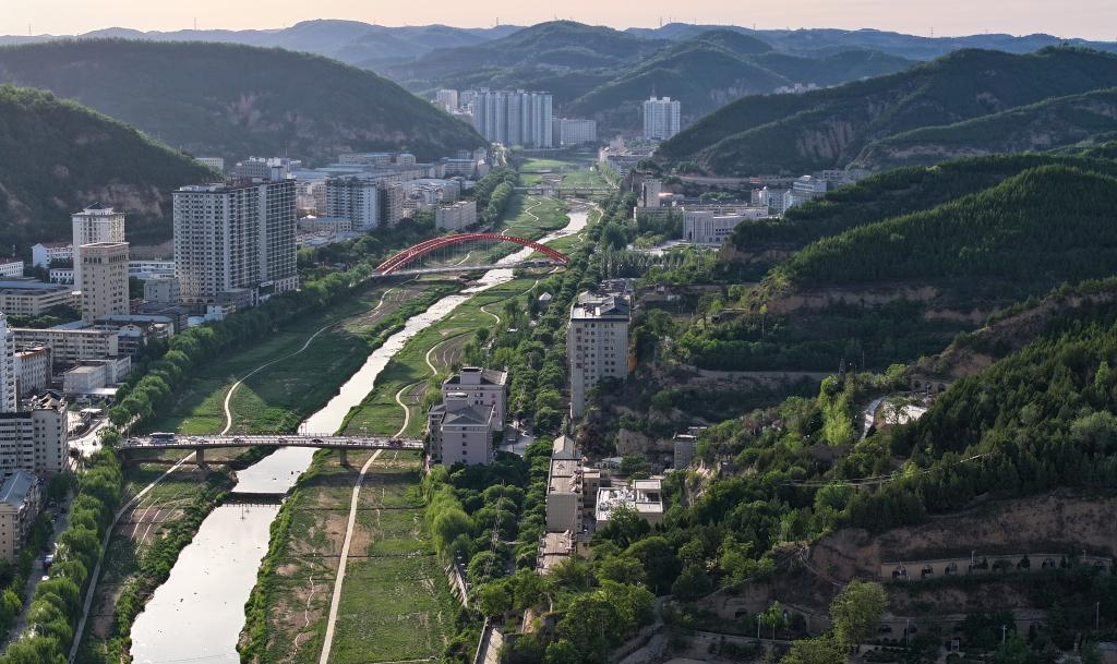 這是2025年6月3日拍攝的延安城區風光(無人機照片)。新華社記者 張博文 攝
