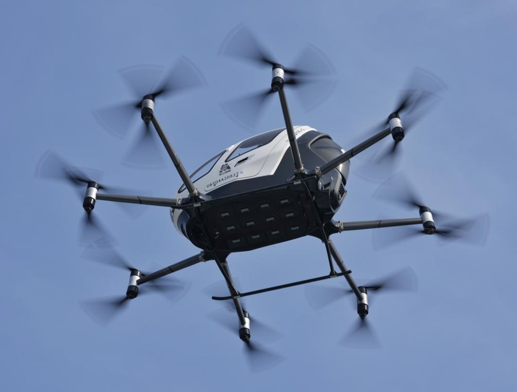 2月13日,成都市主城區首次進行eVTOL載人驗證飛行。 新華社記者劉坤 攝