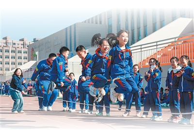 內蒙古呼和浩特市南馬路小學的師生在課間活動。
